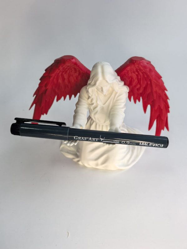 Фигурка-подставка «Крылатый Страж» — декоративная настольная подставка для ручек, маркеров и канцелярии, выполненная в выразительном фэнтезийном стиле с контрастными крыльями.