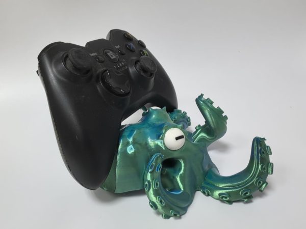 Форма подставки выполнена в виде осьминога с детализированными щупальцами, которые удерживают геймпад и одновременно служат визуальным акцентом. Изделие не только решает задачу аккуратного хранения, но и становится заметным элементом рабочего стола или игровой зоны.