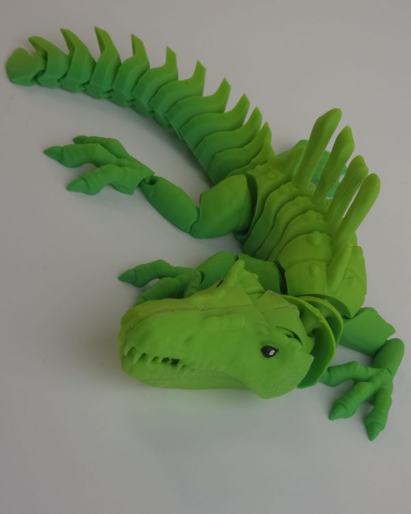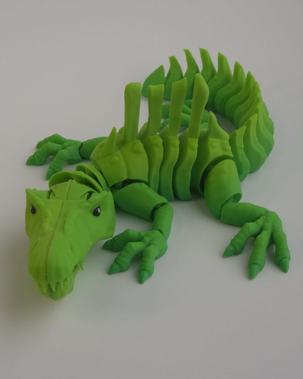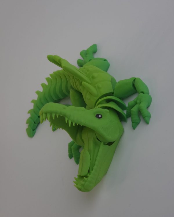 Фигурка «Дракон» создана методом высокоточной 3D-печати и состоит из множества подвижных элементов. Тело полностью сегментированное, лапы и хвост гибкие, челюсть оснащена простым механическим элементом: при нажатии на «язык» рот закрывается, при отпускании — открывается.