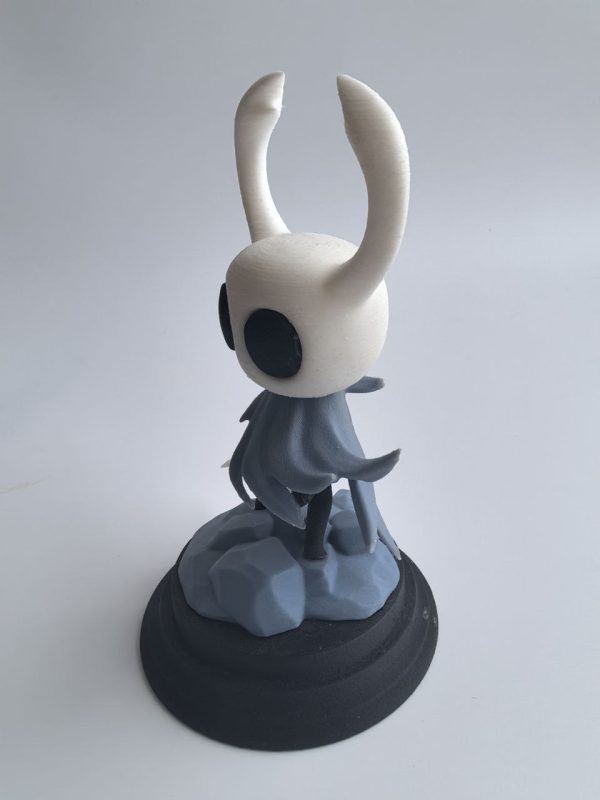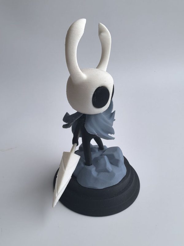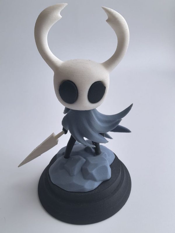 Декоративная фигурка в стилистике популярных инди-игр: маленький молчаливый герой с характерным силуэтом и копьём, стоящий на скальной подставке. Отлично подойдёт как украшение рабочего стола, полки или игровой зоны.