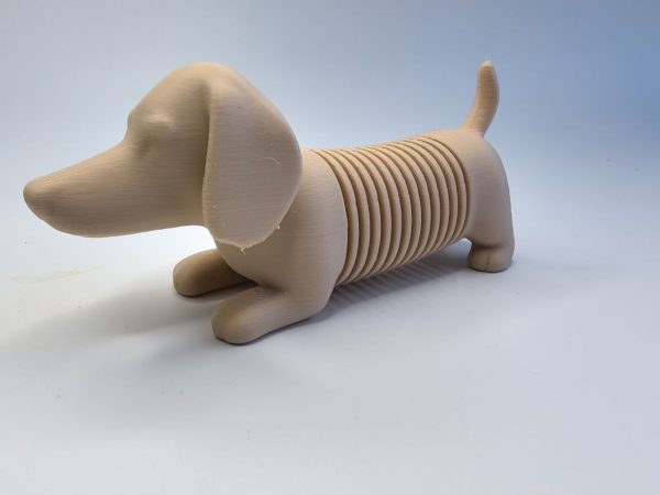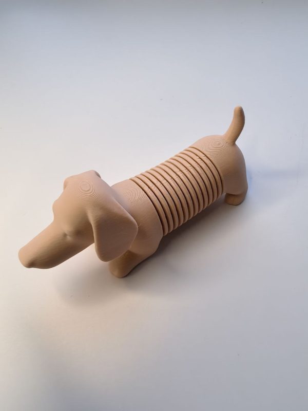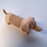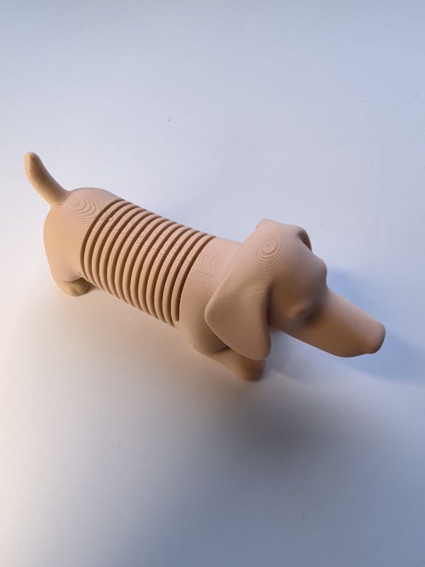 Фигурка выполнена в виде таксы с сегментированным корпусом, который легко сгибается и возвращается