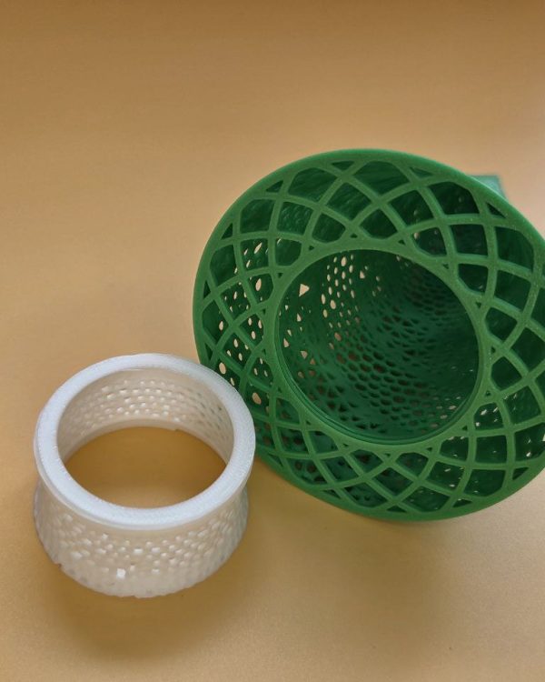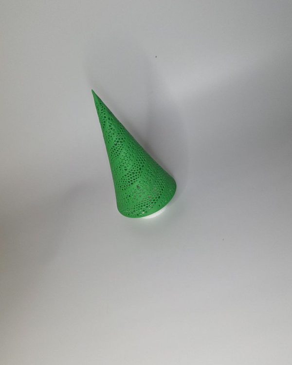 Декоративный конус «Ажурный» изготовлен методом высокоточной 3D-печати. Кружевная структура придаёт изделию лёгкость и визуальную глубину. Конус подходит как самостоятельный элемент декора или как плафон для маломощных LED-источников света.