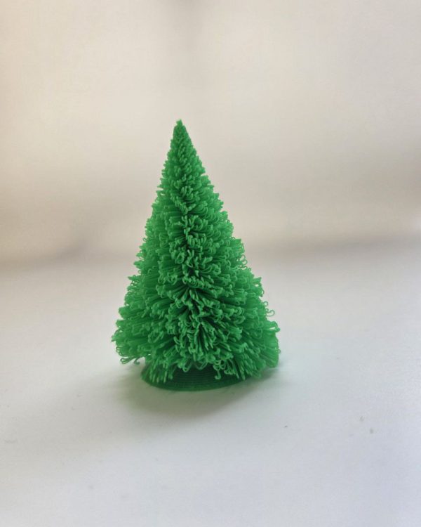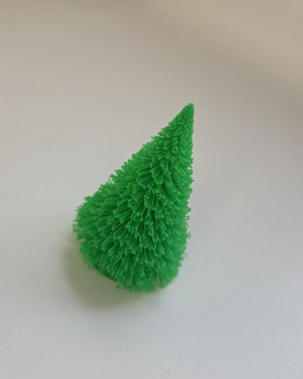 Декоративная ёлка «Пушистая» изготовлена методом 3D-печати и имеет характерную объёмную структуру, создающую эффект мягких, густых веточек. Изделие подходит как самостоятельный элемент оформления, так и в составе новогодних наборов или тематических композиций.