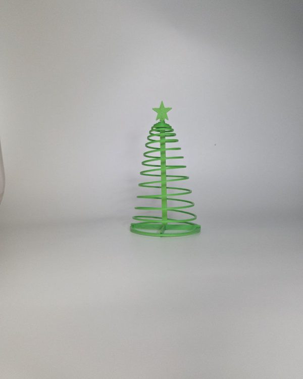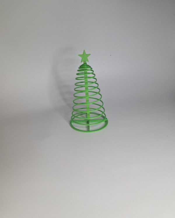 Декоративная ёлка «Спиральная» выполнена методом 3D-печати и имеет упругую спиральную форму. Конструкция слегка пружинит при нажатии, за счёт чего изделие выглядит объёмным и «живым», сохраняя при этом стабильность и прочность.